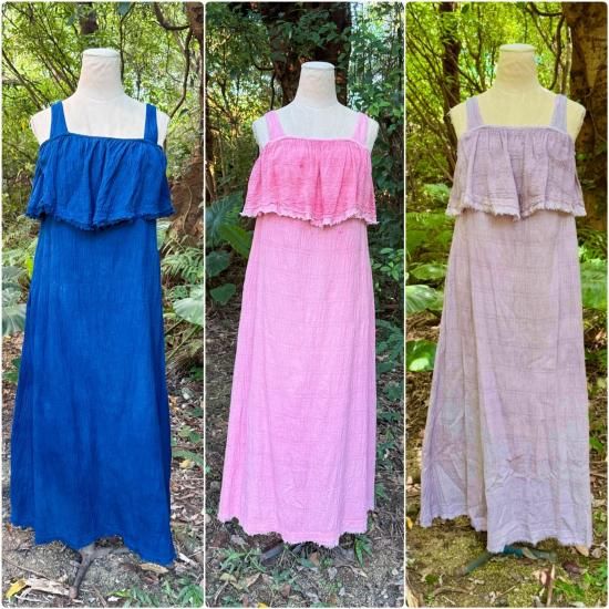 ヘンプ&コットン∞ショルダー2wayフリルロングワンピース(母乳対応☆)草木染め