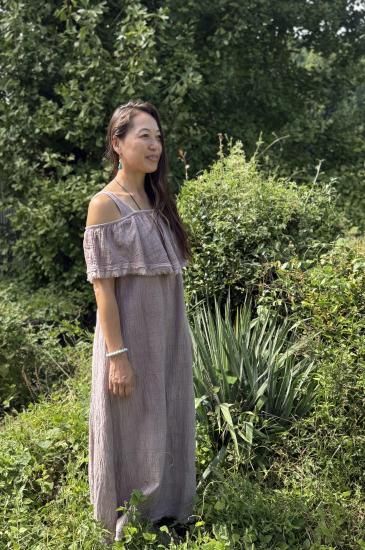 手紡ぎ∞手織り∞手縫い∞オーガニックコットン&ヘンプコットン&リネンコットン∞フラワー繋ぎワンピース☆(母乳対応)草木染め