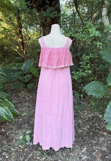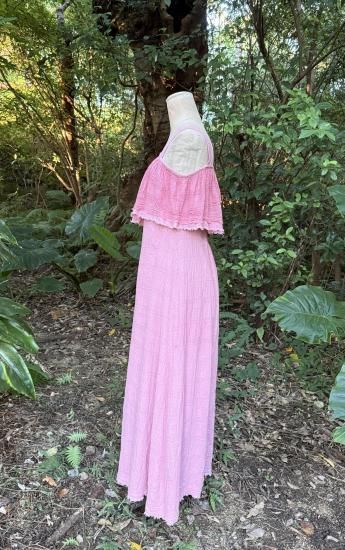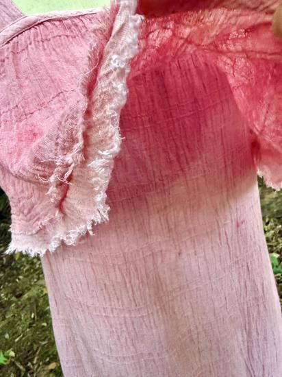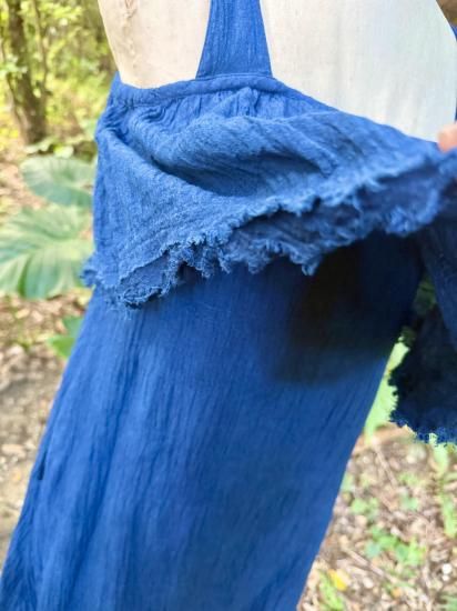 コットン∞ダブルガーゼ∞シャーリングスリーブワンピース☆裾フリンジタイプ☆草木染め